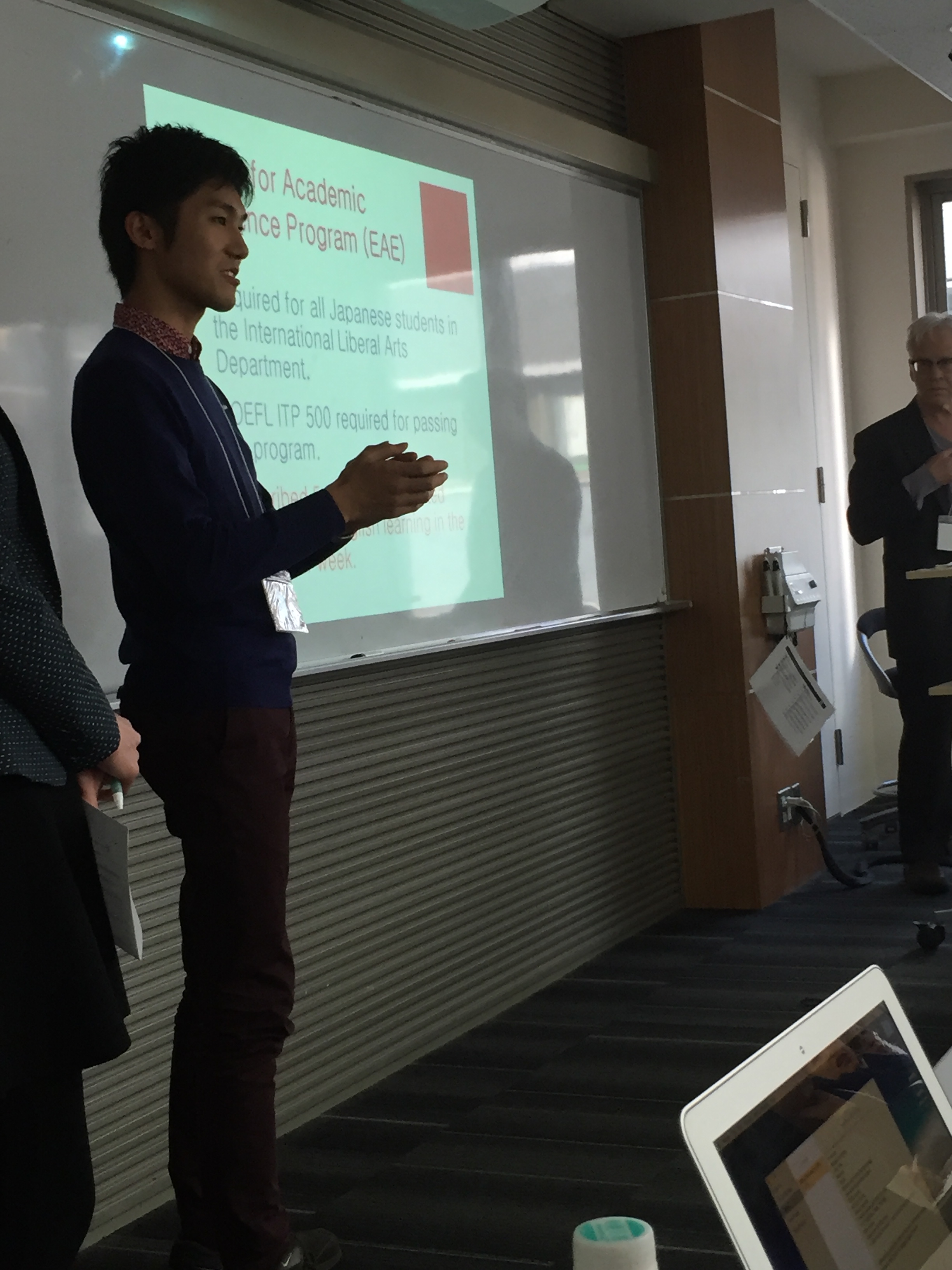 The presenters used conversation analysis to examine a face-to-face advising session conducted in Japanese between an experienced learning advisor and a fourth-year non-English major. Conversation analysis revealed steps that the experienced advisor took to gather accurate information, confirm her interpretations, and maintain intersubjectivity. The presenters will give examples of these steps and discuss their relevance in relation to Kelly’s skills. Presentation slides here.